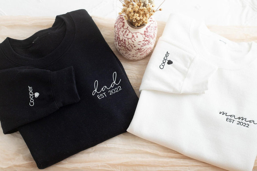 Celebrate the special bond of parenthood with our Embroidered Custom Mom and Dad Sweatshirts! This matching set is designed for stylish parents who want to showcase their love and unity. Each sweatshirt features elegant embroidery, with customizable options to add names, initials, or meaningful text. Made from premium, soft fabric, these sweatshirts are perfect for cozy moments, family outings, or heartfelt gifts.