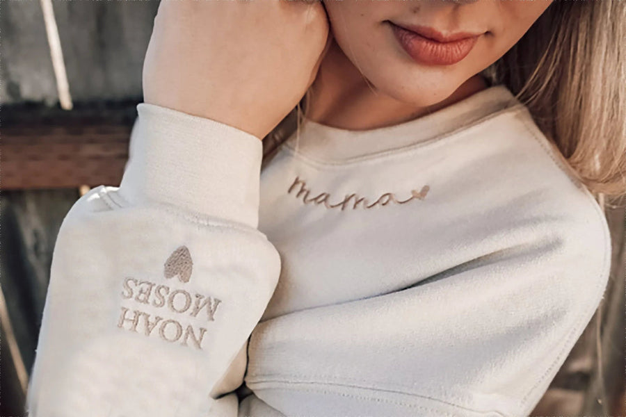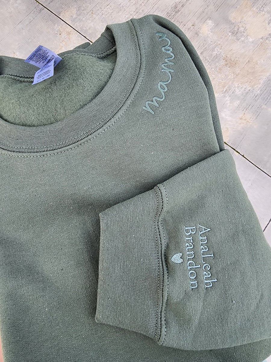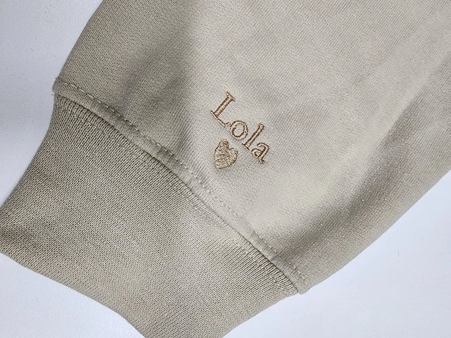 Celebrate the special bond between a mother and her child with this Personalized Mama Sweatshirt! Featuring a custom embroidery of your child's name on the sleeve, this sweatshirt is a heartfelt and unique gift that every mom will cherish. Made from premium, soft fabric, it combines comfort with style, making it perfect for everyday wear or cozy moments at home.